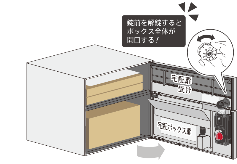居住者はダイヤル錠をまわすだけで郵便物と配達物を