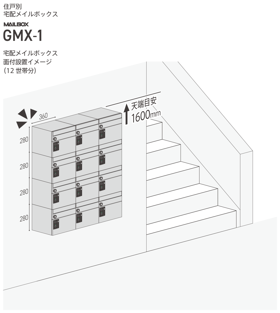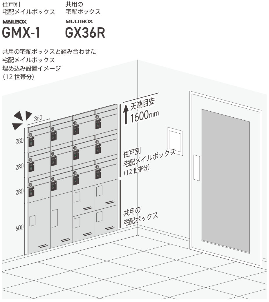 配達物の出し入れを考慮し、当商品の推奨ボックス天端高さを1600mmとしています。 - 世帯数およびボックス数は一例です。