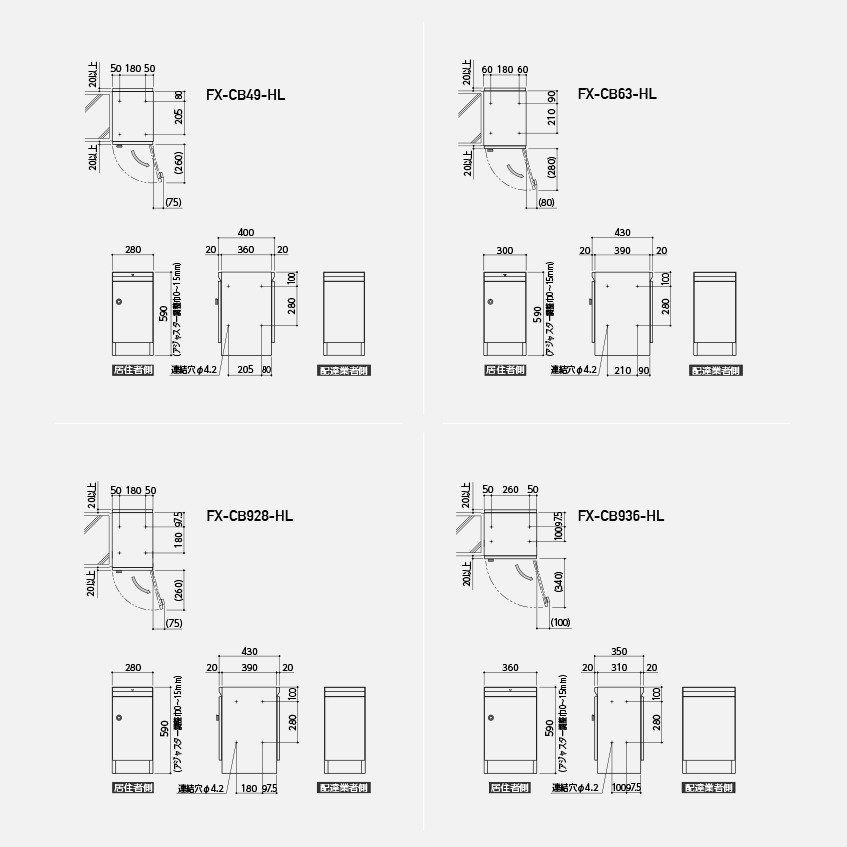商品検索 用途から探す 設置場所集合住宅用戸建住宅用設置方法前入前出前入後出設置場所屋内屋外可扉の開き方向ヨコ開き引上げ勝手違い開閉音考慮型投函可能サイズ角2封筒角3封筒大型郵便ボックスサイズ(1扉H/mm)~100~120~150~200~300~400401~価格(1扉/円)〜10,000〜20,000〜30,000〜50,000〜100,000〜150,000150,001〜 品番から探す キーワードで探す TOP > 商品 > FX-CB MAILBOX郵便受箱 FX-CB 集合郵便受と組み合わせができる多機能ボックス 仕様・機能 集合住宅用 前入後出 説明 集合郵便受のファンクションユニットで、居住者の方ならどなたでもご利用いただけます。 クリーンボックスは不要チラシ入れです。 標準仕様 / 価格(税抜価格) 詳細図 ダウンロード 取付説明書取扱説明書図面/CAD図面/PDF