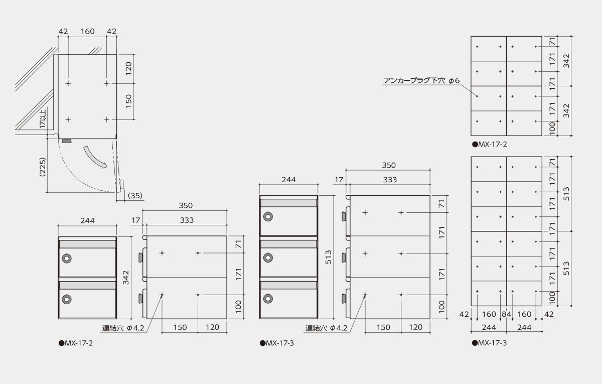 商品検索 用途から探す 設置場所集合住宅用戸建住宅用設置方法前入前出前入後出設置場所屋内屋外可扉の開き方向ヨコ開き引上げ勝手違い開閉音考慮型投函可能サイズ角2封筒角3封筒大型郵便ボックスサイズ(1扉H/mm)~100~120~150~200~300~400401~価格(1扉/円)〜10,000〜20,000〜30,000〜50,000〜100,000〜150,000150,001〜 品番から探す キーワードで探す TOP > 商品 > MX-17 MAILBOX郵便受箱 MX-17 BL-A4 たて型モデルタイプ 仕様・機能 集合住宅用 前入前出 ヨコ開き扉 myナンバー錠 角2封筒 ヘアライン ~H200 ~¥20,000 BL 説明 公団サイズたて型と同サイズ(幅・高さ)のためリフォームの交換作業が容易にできます。メンテナンスも容易で、角2封筒が収納できます。 扉は耐久性・強度に優れたステンレス(SUS304)製で、 2段タイプと3段タイプがございます。 標準仕様 / 価格(税抜価格) 詳細図 ダウンロード 取付説明書取扱説明書図面/CAD図面/PDF