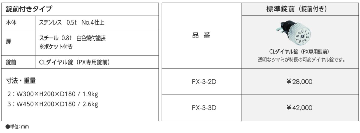 オプションで、扉を上下に分割できるパーツ(PX-3 OPD)もあります。